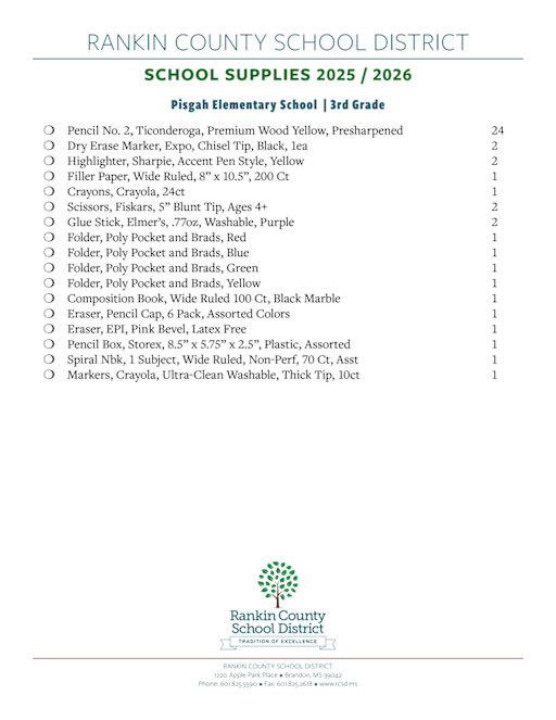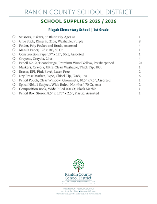 Source : www.cmcss.netSchool Supply List Pisgah Elementary School