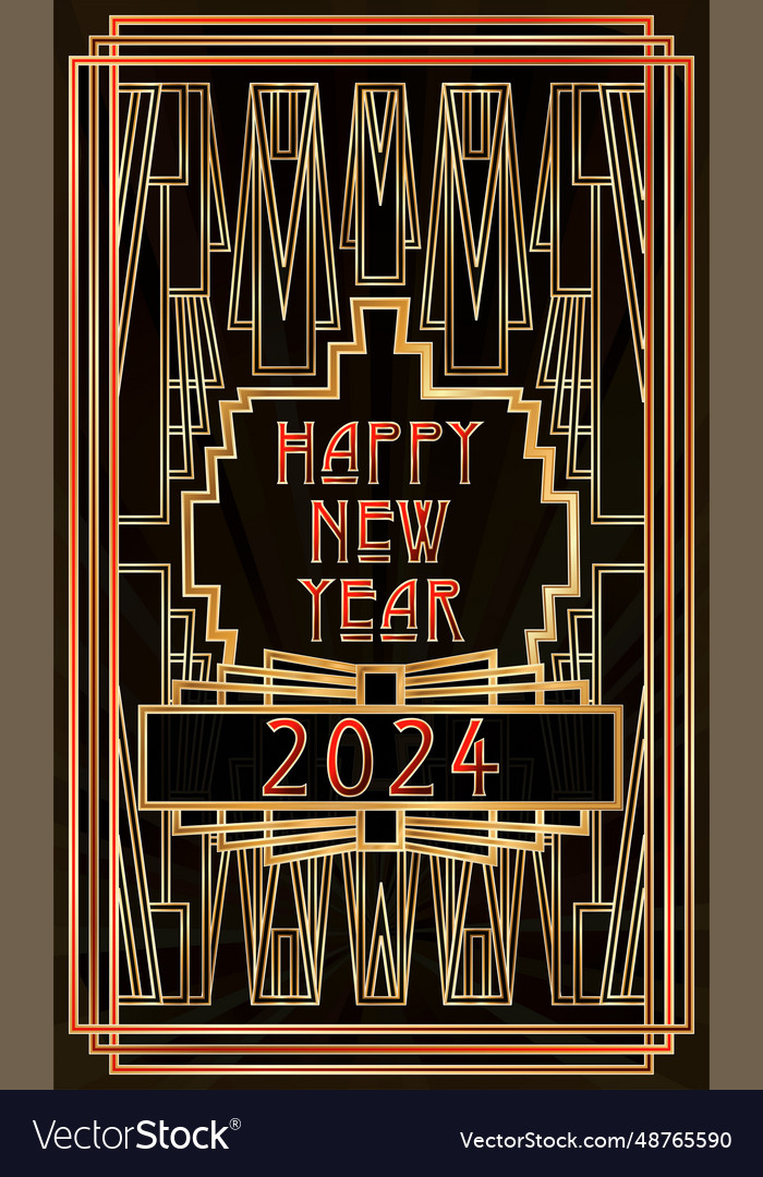 Source : www.vectorstock.comHappy new 2024 year art deco invitation card vect Vector Image
