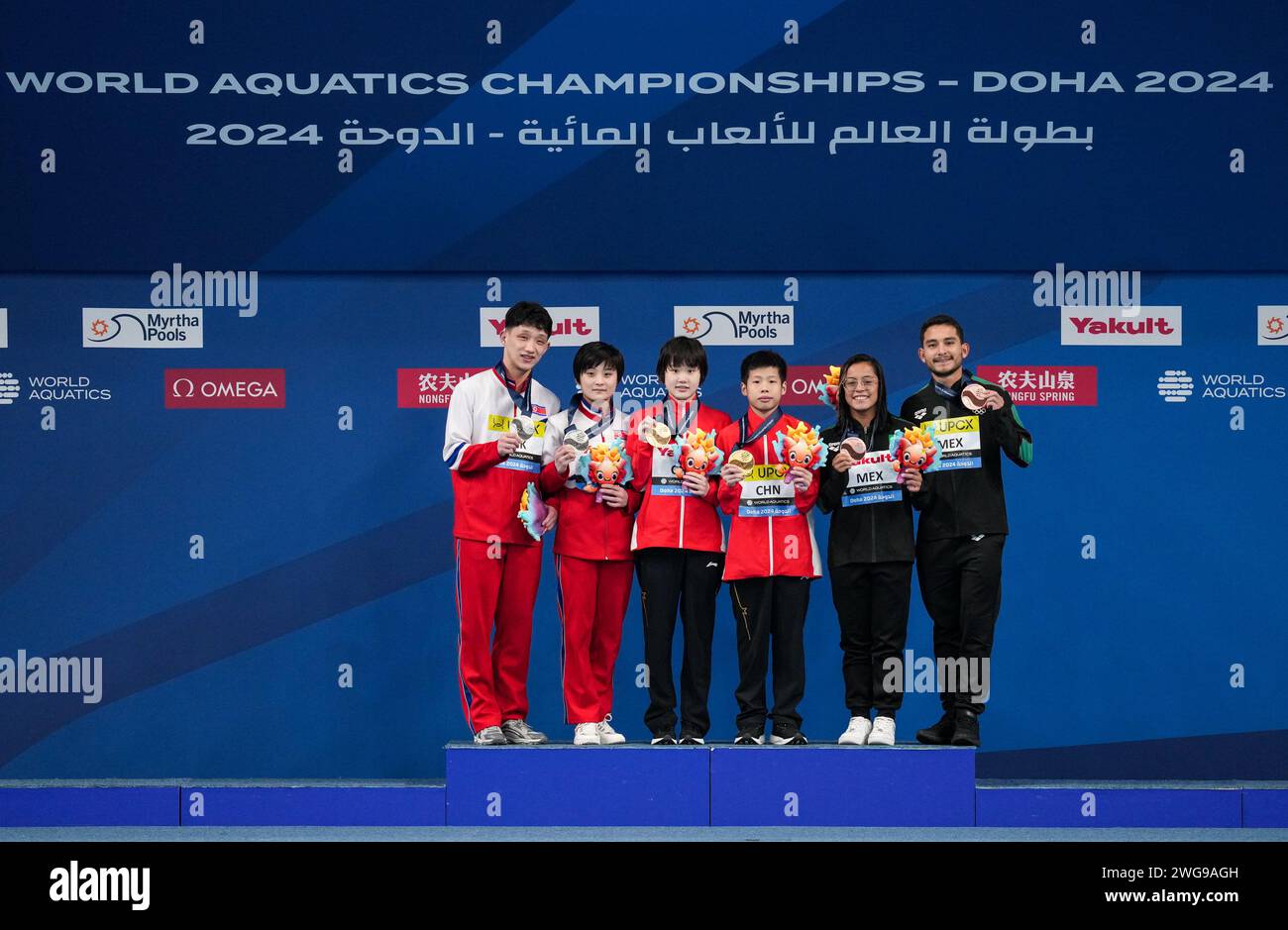 Source : www.youtube.comDoha, Qatar. 3rd Feb, 2024. Gold medalists Huang Jianjie (3rd R