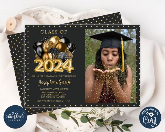 Source : www.amarra.comBuy Graduation Party Invitation Template, Editable Black and Gold