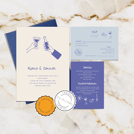 Source : s.click.aliexpress.comIllustrated Wedding Invitation Suite Template Something Blue